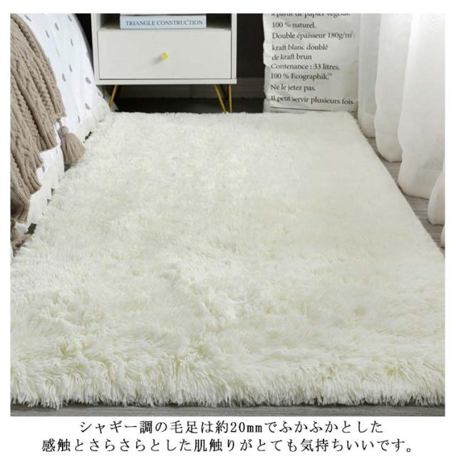 | 夏でも冬でもふわふわ、さらさらの感触で一年中快適にお過ごしいただけること間違いなしです。 シャギー調の毛足は約20mmでふかふかとした感触とさらさらとした肌触りがとても気持ちいいです。 裏面には滑りにくい加工を施しているためフローリングでも安心してご使用いただけます。 多色展開ですのでお部屋に合わせてお好きなカラーをお選び下さい。 適用範囲が広い 和室や客間、リビング、ダイニングなどの人が集まる空間や、寝室、書斎、プライベー トルームといった落ち着きを演出する空間など、どのお部屋にもぴったりです。 | |
