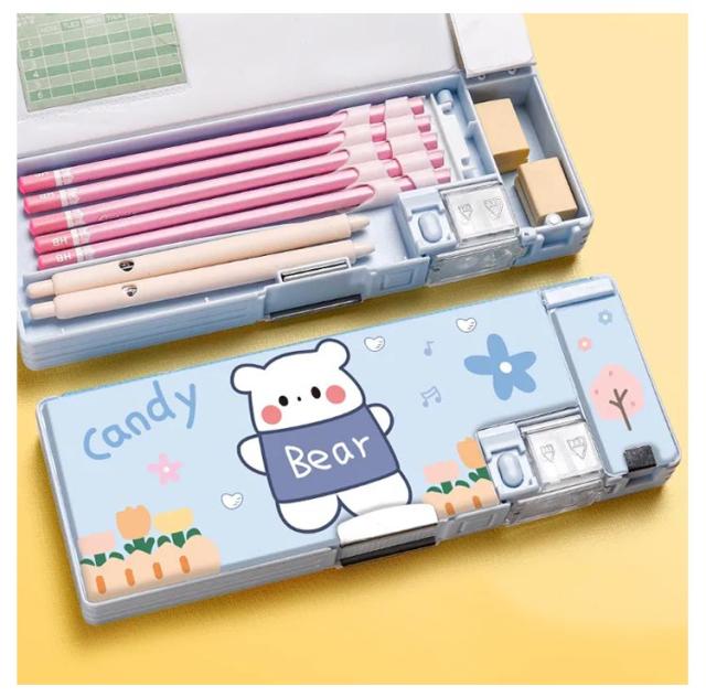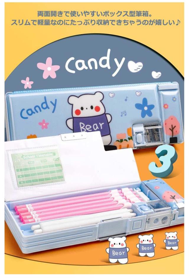 筆箱 女の子 小学生 ペンケース 筆入れ 鉛筆削り付き ソフトペンケース 両面 両開き 筆箱・筆入れ コンパクト 子供 男の子 文房具 可愛い 箱型 ふでばこ 小学生 小学校 入学準備 卒園祝い 入学祝い プレゼント ギフト 卒園 新一年生 新1年生 2024 送料無料