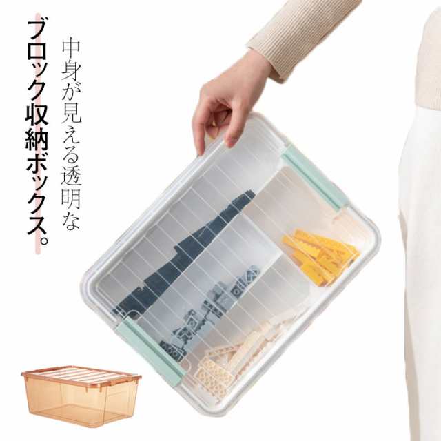| 中身が見える透明なブロック収納ボックス。 中は仕切りがあり、ブロックを種類や大きさ別に細かく整理できます。 蓋も本体も透明になっているので、どんなブロックが入っているか外側から見やすいです。 左右にはバックルが付いておりますので中身がこぼれないので安心です。 ブロック収納はもちろん、化粧品、下着、靴下、文房具、スナックなど小物収納としてもお使い頂けます。 | |
