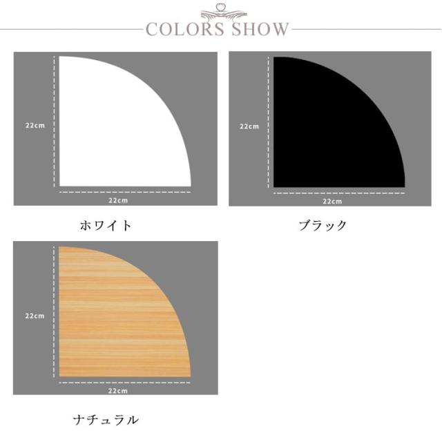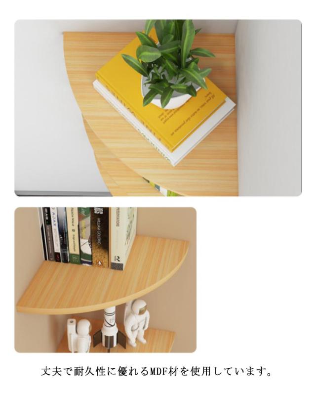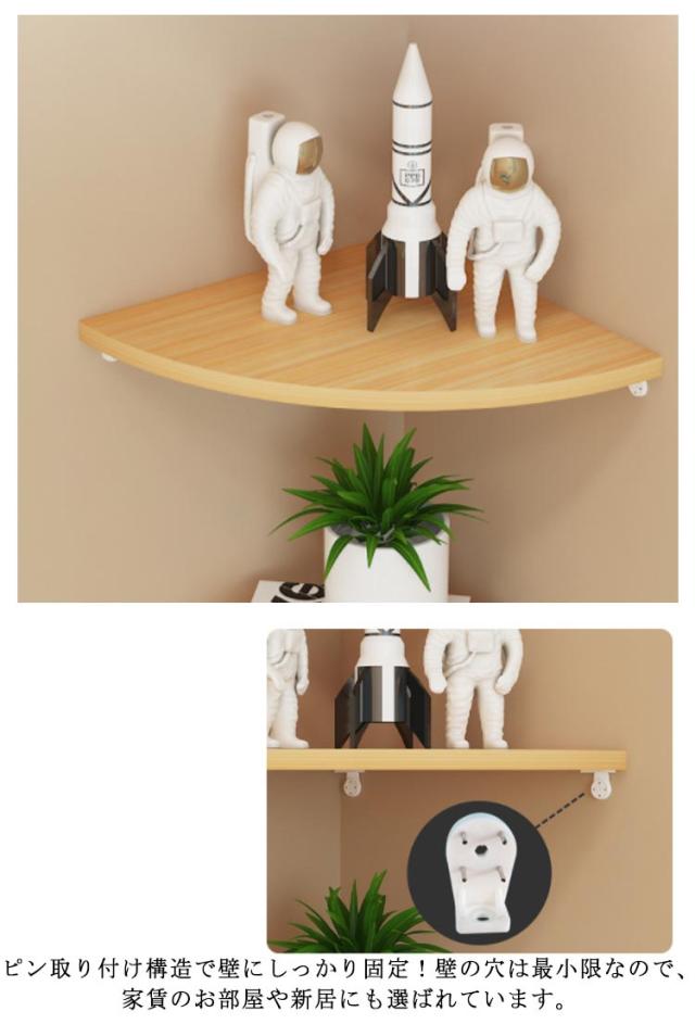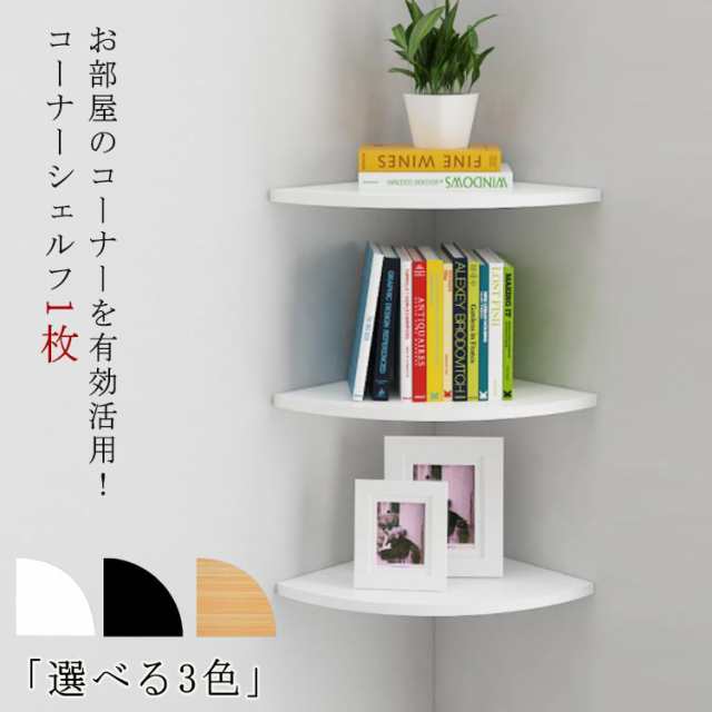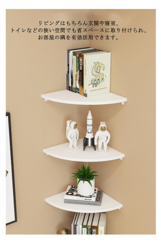 | お部屋のコーナーを有効活用!コーナーシェルフ1枚 「選べる3色」 丈夫で耐久性に優れるMDF材を使用しています。 耐荷重も20kgとしっかりしており、様々な収納物に対応できます。 デッドスペースになりやすい90度の角地を収納スペースに早変わりに!リビングはもちろん玄関や寝室、トイレなどの狭い空間でも省スペースに取り付けられ、お部屋の隅を有効活用できます。 本、充電器、ルーター、コンセント、小物や観葉植物の置き場所としてもおすすめ。場所を取らずに、ちょこっと飾りたい時に便利です。 ピン取り付け構造で壁にしっかり固定!壁の穴は最小限なので、家賃のお部屋や新居にも選ばれています。 | |