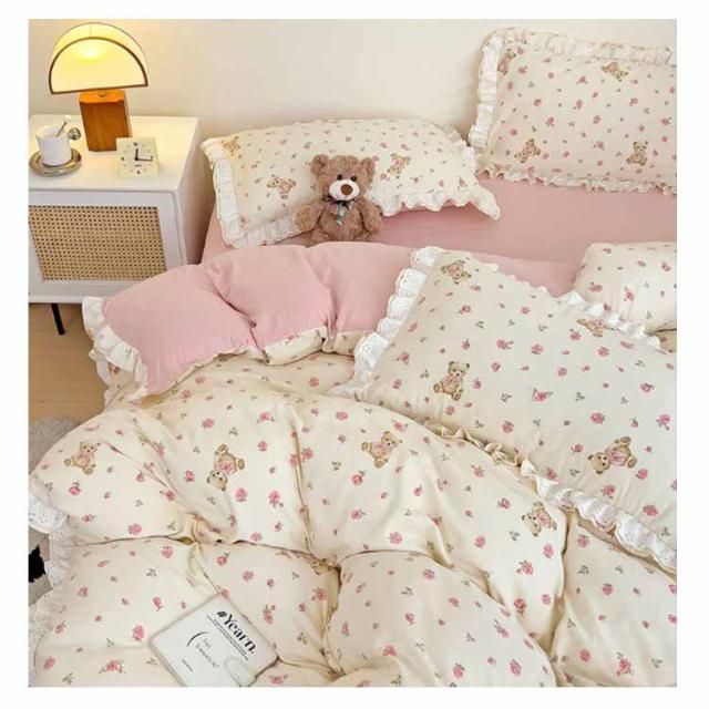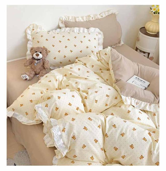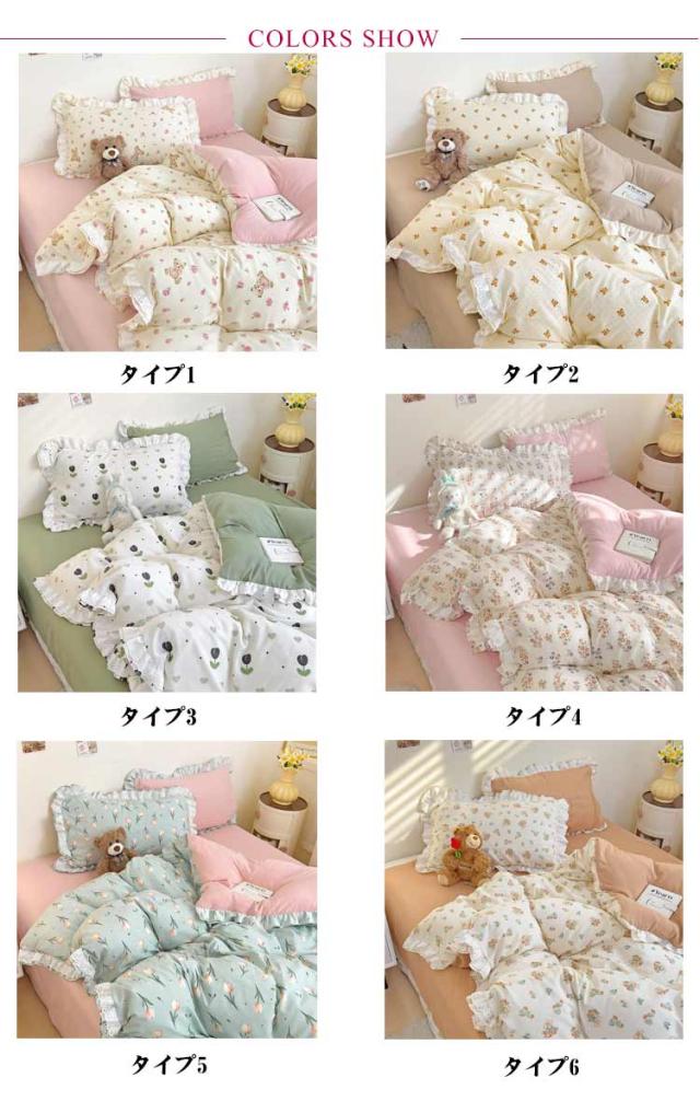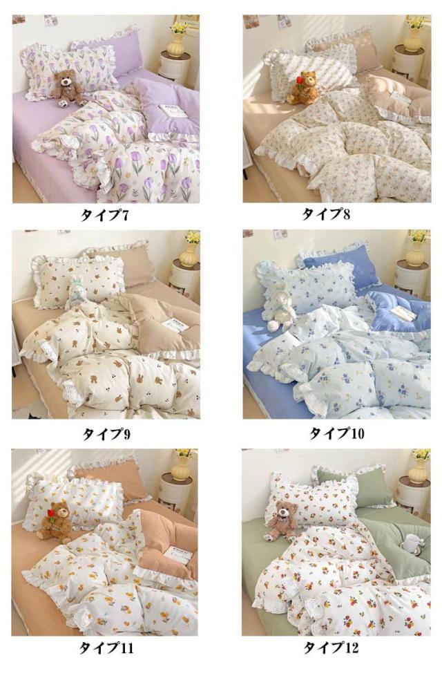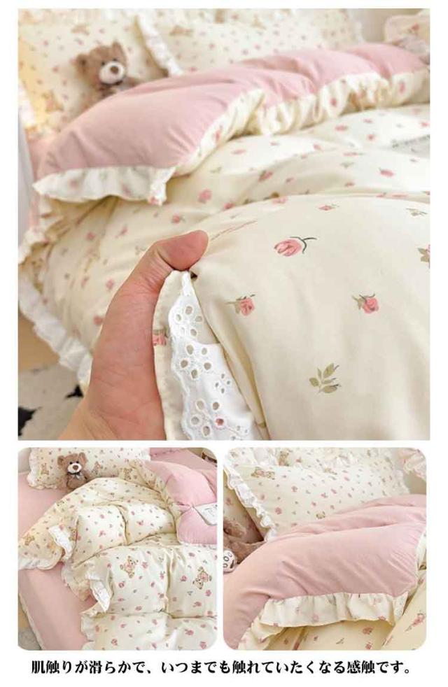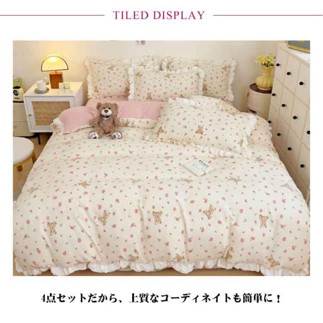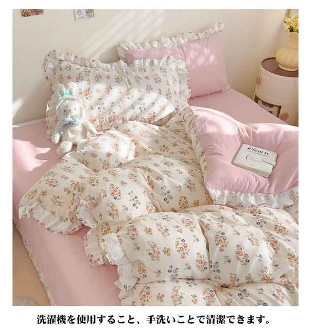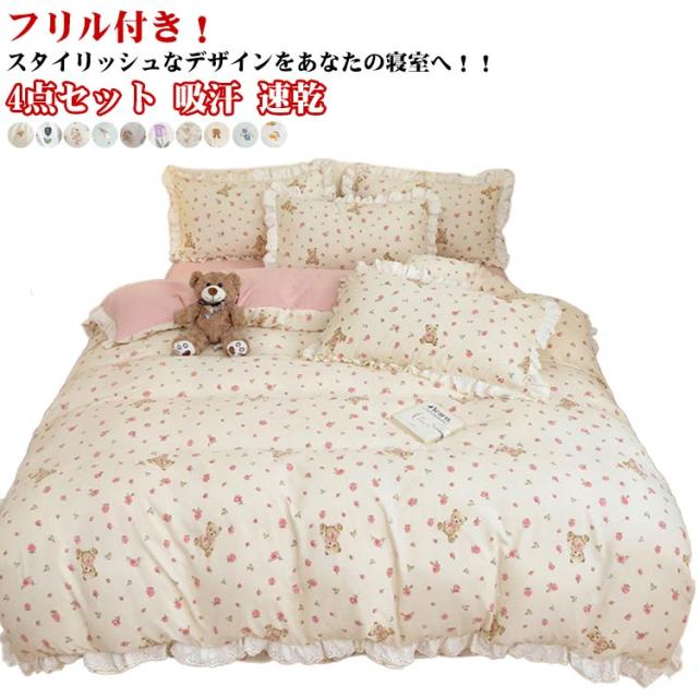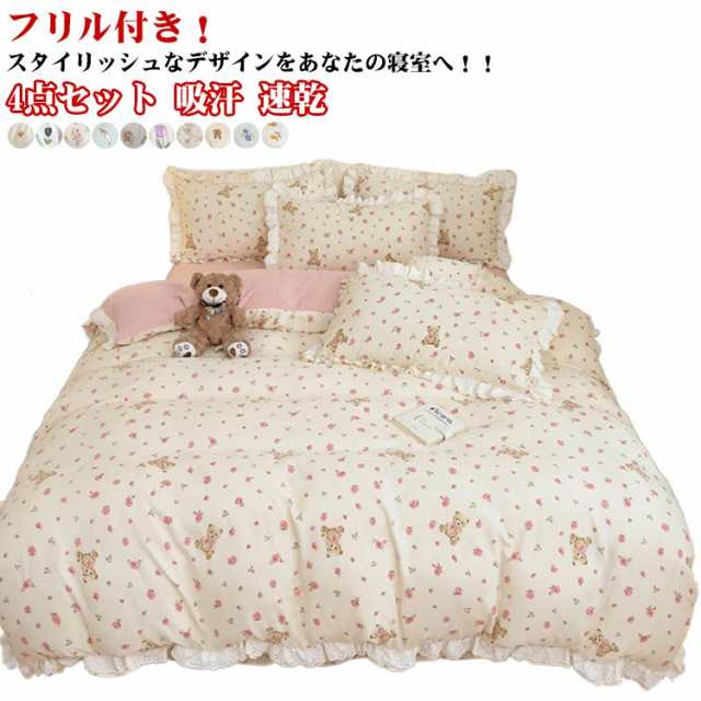 布団カバー セミダブル 4点セット オールシーズン 布団カバーセット 可愛い フリル付き 掛布団カバー 姫系 柔らか 掛け布団カバーセット インテリア 北欧 吸汗 速乾 布団用 新生活 寝具 一人暮らし プレゼント 肌に優しい おしゃれ