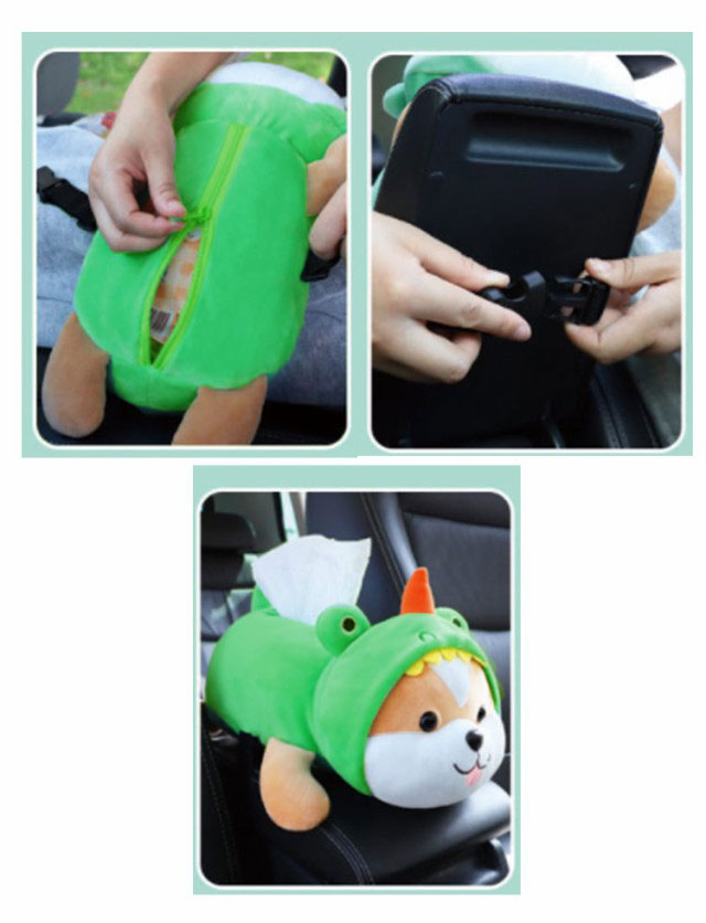 | 可愛いぬいぐるみティッシュカバーです。 簡単装着!アームレスト、サンバイザー、シートなどにベルトを通し、バックルで留めるだけ。 ついつい抱っこしたくなるようなふわふわ気持ちのいい肌触りもポイント★ 車に癒しのアクセント♪ 汚れたら水洗い可能。 | |