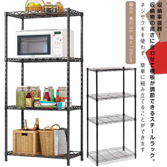スチールラック 4段 幅60 スチールシェルフ キッチンラック レンジラック 奥行35 スリム 隙間収納 すき間 棚 メタル シェルフ 炊飯器 ラック 本棚 オープンラック スチール棚 収納ラック 頑丈 マガジン ランドリー 洗面所 家庭用 業務用