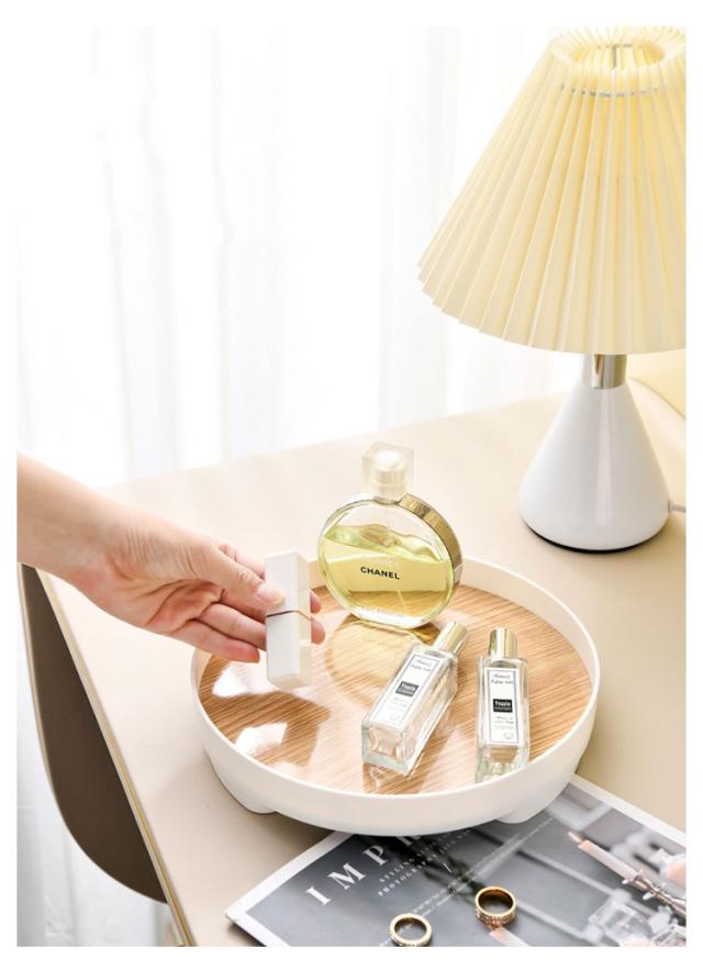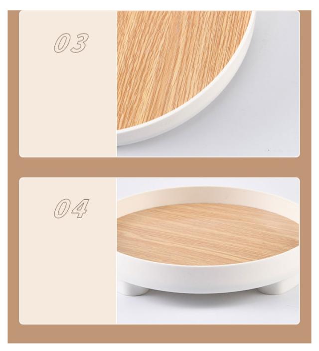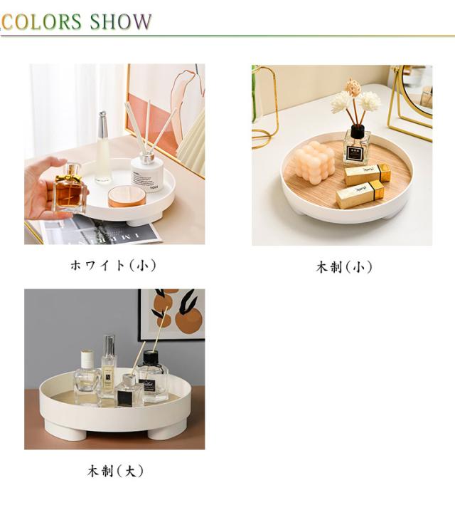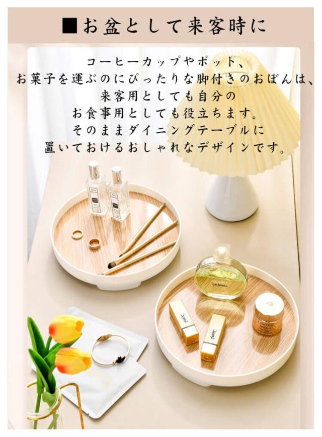| ■お盆として来客時に コーヒーカップやポット、お菓子を運ぶのにぴったりな脚付きのおぼんは、来客用としても自分のお食事用としても役立ちます。 そのままダイニングテーブルに置いておけるおしゃれなデザインです。 ■小物入れに 化粧水や乳液などのスキンケア化粧品やアクセサリーの収納、キートレイとして、など小物収納にピッタリなインテリア雑貨です。 ■さまざまなインテリアになじむ プラスチックと木製(MDF)がコンビになったナチュラルなデザインの丸型トレー。 北欧テイストなどの洋風はもちろん、人気の韓国インテリア、モロッカン、アジアンリゾート、和モダンなどの和風のお部屋にもしっくりなじみます。 | |