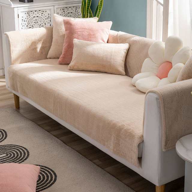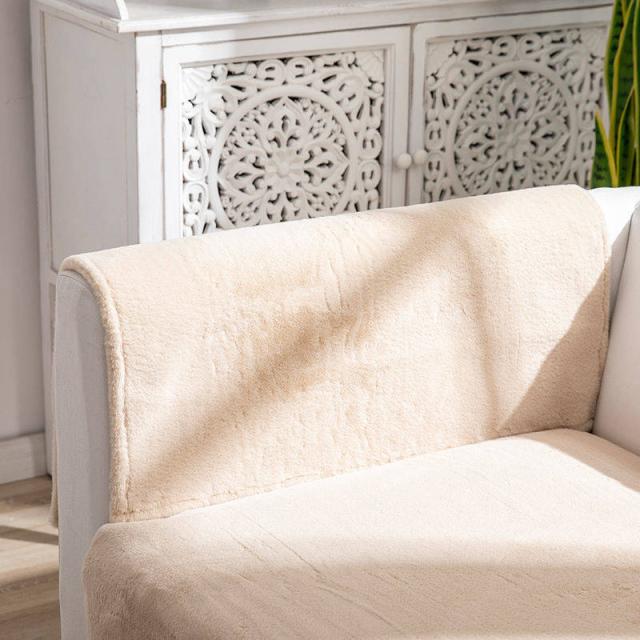 マルチカバー ニュープレーン ファー 180×70cm ナチュラル ソファーカバー 掛けるだけ 無地 一枚布 長方形 3人掛け 2人掛け ベッドカバー かわいい インテリア 雑貨 生地