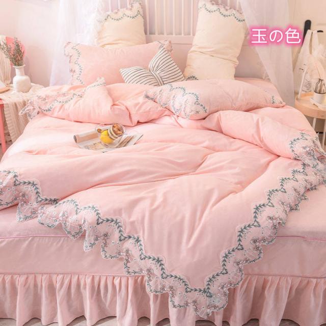 布団カバーセット 3点セット セミダブル シングル花レース 姫系 ベッドスカート 寝具カバー 4点セット きれいめ フラットシーツ ボックスシーツ 枕カバー 布団カバー 可愛い オシャレ 掛け布団カバー やわらかい 安心 清潔 肌触り 快眠 マットレスカバー