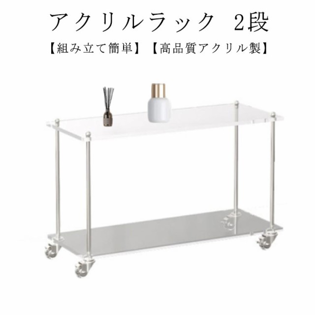 アクリルラック オープンシェルフ 2段ラック クリア 透明 本棚 収納 棚 簡単組立 キャスター付き おしゃれ 収納棚 ディスプレイ ラック シェルフ フラワースタンド 家具 飾り棚 リビング収納 ナチュラル おしゃれ サイドテーブル