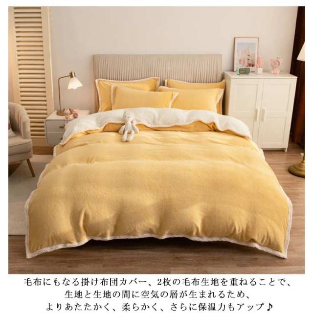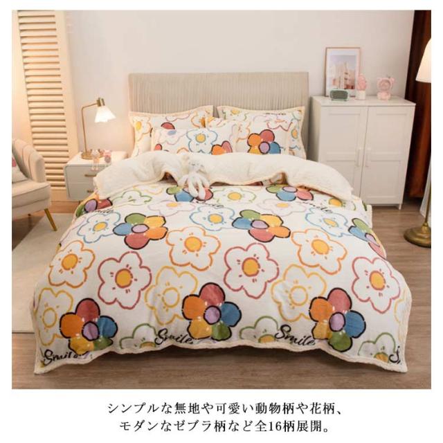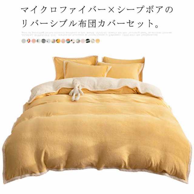 | マイクロファイバー×シープボアのリバーシブル布団カバーセット。 毛布にもなる掛け布団カバー、2枚の毛布生地を重ねることで、生地と生地の間に空気の層が生まれるため、よりあたたかく、柔らかく、さらに保温力もアップ♪ シンプルな無地や可愛い動物柄や花柄、モダンなゼブラ柄など全16柄展開。 パチッを減らす秋冬には嬉しい静電気防止加工、お肌にストレスなくポカポカで超快適な寝心地◎ 枕カバー、シーツも含めるお得なセット、統一感があり、保温効果もより抜群で、布団に入った瞬間からぽかぽかで冬の厳しい寒さにこれだけあれば安心。エアコンをかけなくてもふわふわあったか、電気代の節約にもなり、お財布にも優しい。 乾きやすく、洗濯機で丸洗いできるから、いつも清潔に使えます。 | |