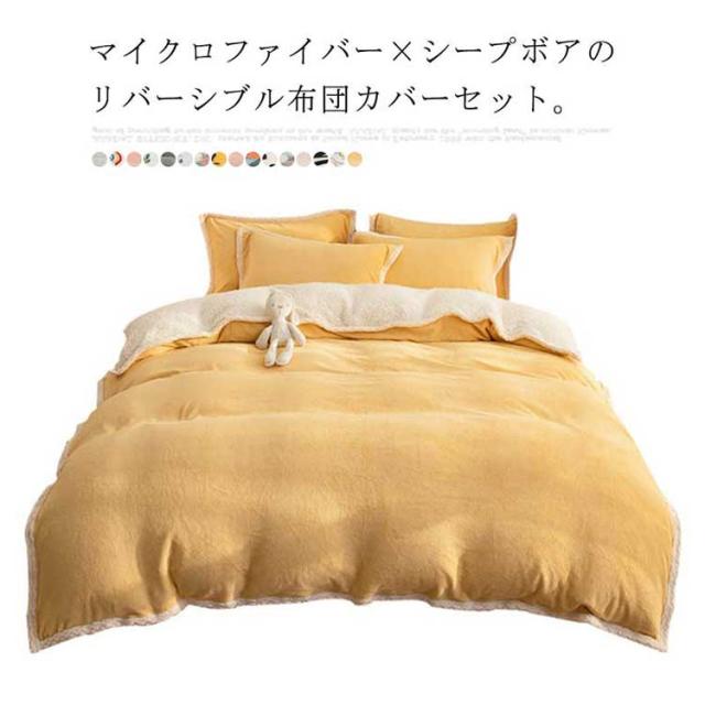 厚手 極暖 布団カバー 4点セット 冬用 シープボア×マイクロフリース ベッドシーツ キング 枕カバー ウォッシャブル 静電気防止 吸湿 リバーシブル 柔らかい 可愛い ふわふわ もこもこ 厚手 寒さ対策 安眠