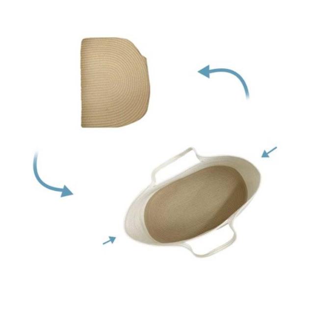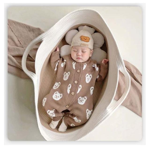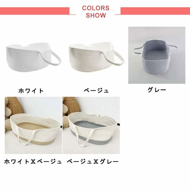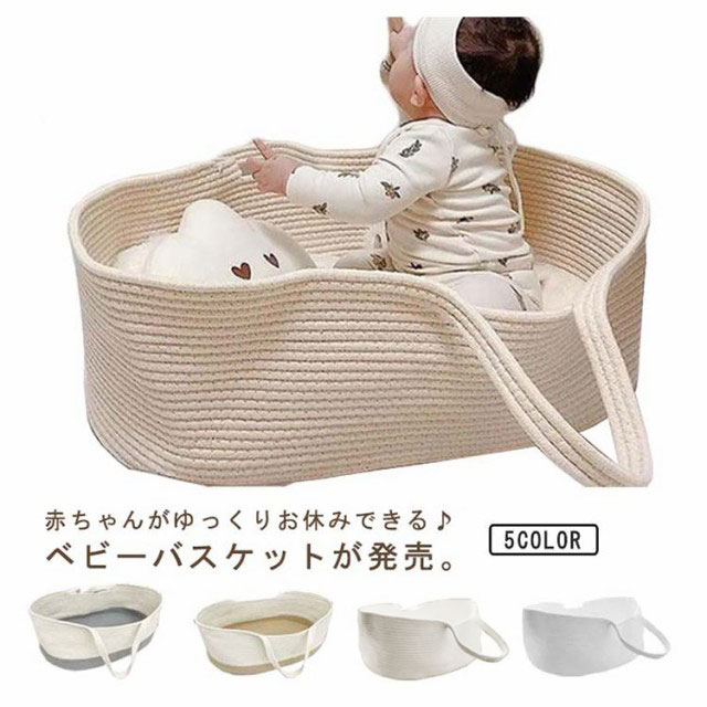 | 赤ちゃんがゆっくりお休みできる♪ベビーバスケットが発売。 しっかり自立する強度で、さわり心地はなめらか。ロープ編みタイプなので、赤ちゃんの手や足が当たっても安心。 持ち手付きで、持ち運びもラクラク。 産院の退院時から使用でき、沐浴時にお着換えセットなどを入れたり、子供のおもちゃ入れにしたり、ペットのベッドにするなど、アイデア次第でいろいろな使い方のできるおしゃれなクーファンです。 | |