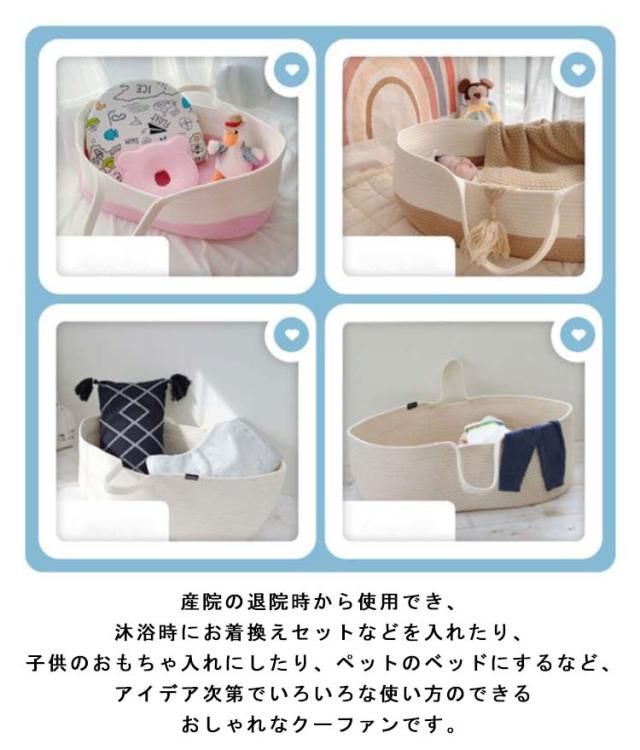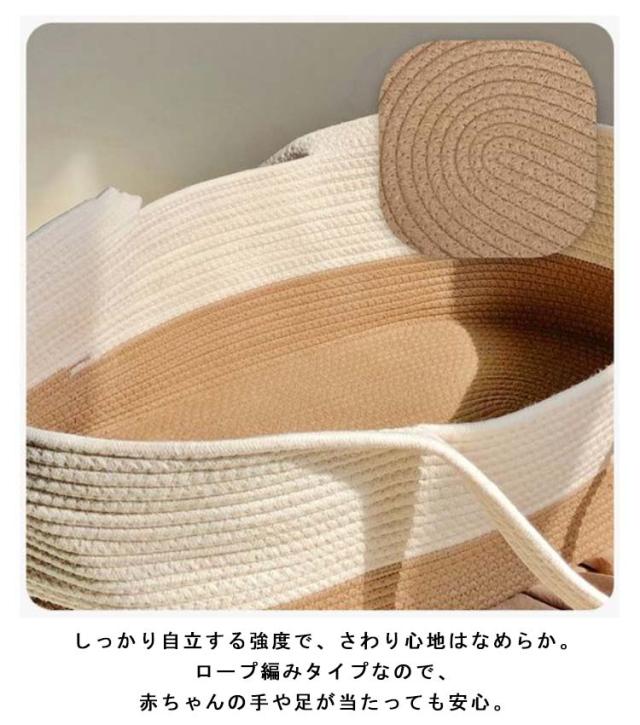 クーファン ベビーバスケット かご 籠 バスケット ベビー クーハン ロープ編み ベビーベッド 寝返り防止 添い寝 お昼寝 ベビーキャリー 赤ちゃん 持ち運び ランドリーバスケット おもちゃ入れ シンプル 退院 出産祝い ギフト ベビー用品 おしゃれ 送料無料