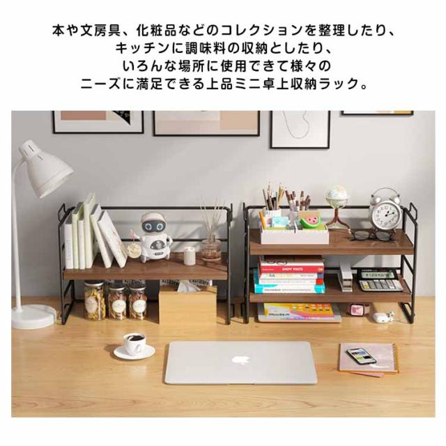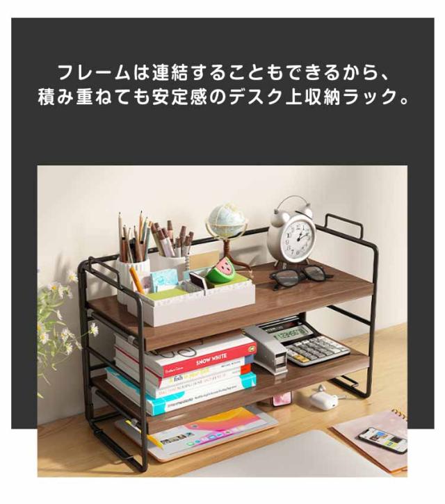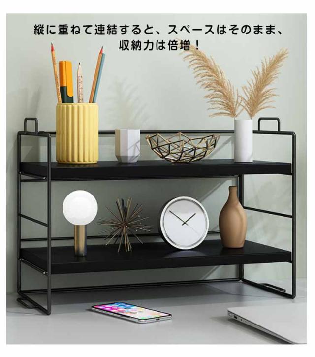 デスク 収納 卓上 ラック キッチン収納 カウンター上 隙間収納 棚 ミニラック オープンラック 机上ラック 可動棚 デスク上置棚 積み重ね可能 収納 ラック 棚 シェルフ 2段 本棚 木製 薄型 省スペース 幅37cm 卓上収納