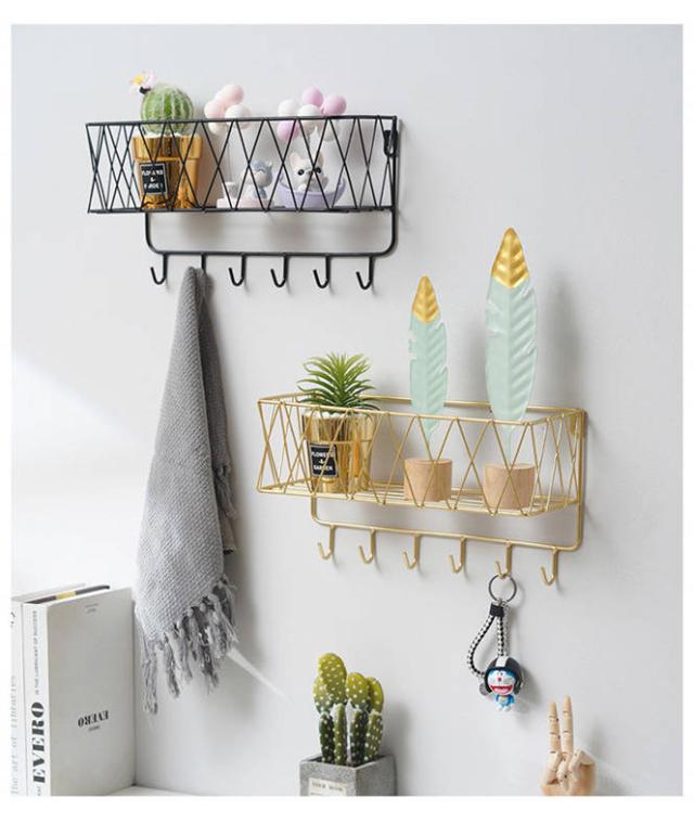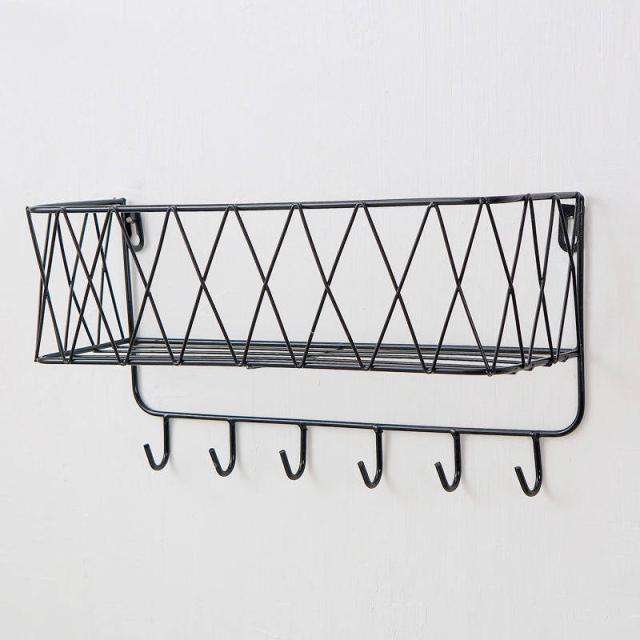 壁掛け 収納 ボックス付きハンガー アイアン ラック 壁掛けハンガー 壁掛け収納 収納 雑貨 アンティーク 北欧 おしゃれ