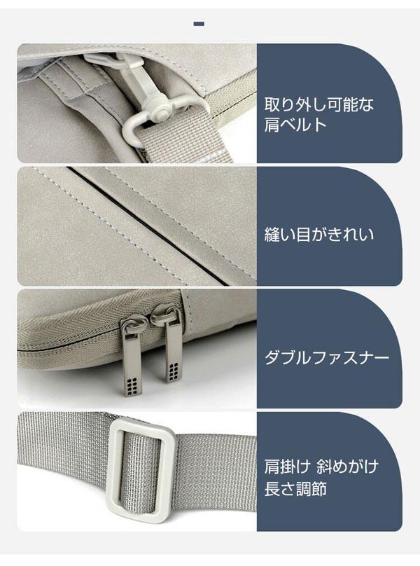 | 特徴 | 【高級素材】シンプルなデザインで、かわいくて、おしゃれで、高級感があります. 高級合皮素材を採用され、質感が良く手触りも 良くとても良い、耐久性に優れていて。 【耐衝撃】衝撃吸収パッドがあり、絹のような手触りのふわふわで、ラップトップをすり傷、衝撃からしっかりと保護します。 【2WAY&ファッション】取っ手付いたから持ち歩きに便利です。バックパックやスーツケースにも収納できます。スムーズなファスナーを採用して開閉しやすいです。広い開け口で中身を取り出しにとても簡単です。シンプルなデザインがおしゃれと機能性を兼ね備えたノートパソコンケース。 【便利性】荷物ストラップ付き、バッグをスーツケースに引っ掛けて簡単に固定します。薄型で軽量、手提げバッグだけではなく、インナーケースとしてもバックパックなどに簡単に収納できます。どこへでも本当に便利です。通学、通勤、出張、家庭用、オフィス用など様々な場合で使用できます。恋人、家族、友人へのプレゼントに最適です。 【 男女兼用 ・高級感溢れ】シンプルで高級感溢れるデザイン、きれいなカラーは老若男女問わず、通勤・旅行・日常生活の様々なシーンに対応します。お友達や家族にもギフトとしておすすめます。 【商品品質】 商品の管理・品質については万全を期しておりますが、万一ご注文と異なる商品・不良品が届いた場合は 商品到着後7日以内にお問い合わせフォームにてお名前・受注番号などをご記入の上、ご連絡頂いた場合のみ対応となります。 | |||||