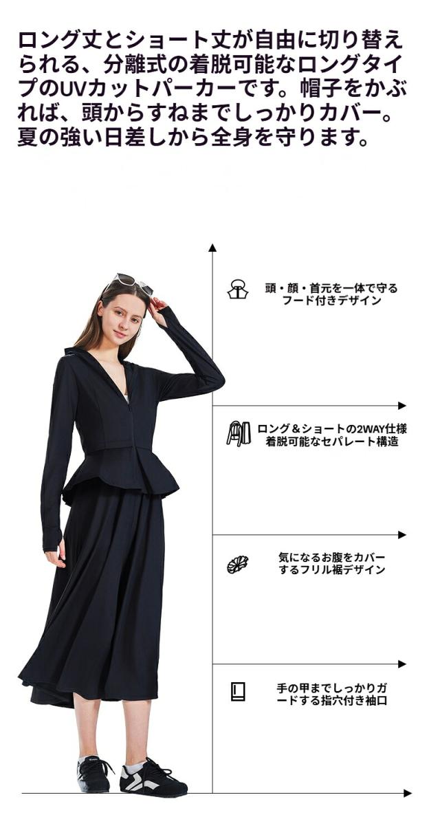 Supield 2WAY レディース UVカット パーカー 可変型 長袖 半袖 切替可能 全方位防護 UPF600+ 軽量 涼感 夏用 アウトドア 抗菌 吸湿速乾 ヨガ テニス ゴルフ アウトドア フィットネスなど あらゆる動きにしっかり対応