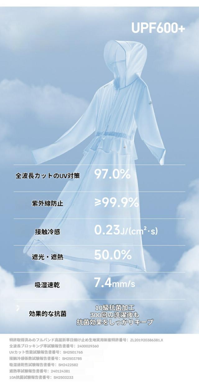 | 紫外線カット指数 | UPF600+ |