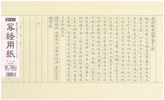 弘梅堂 写経用紙 般若心経 20枚 御手本付 折り目なし (行幅18mm)
