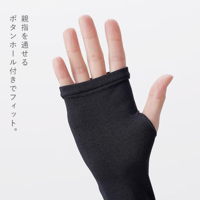 親指を通せるボタンホール付き。ずれにくく指先を使った作業も楽ちん。