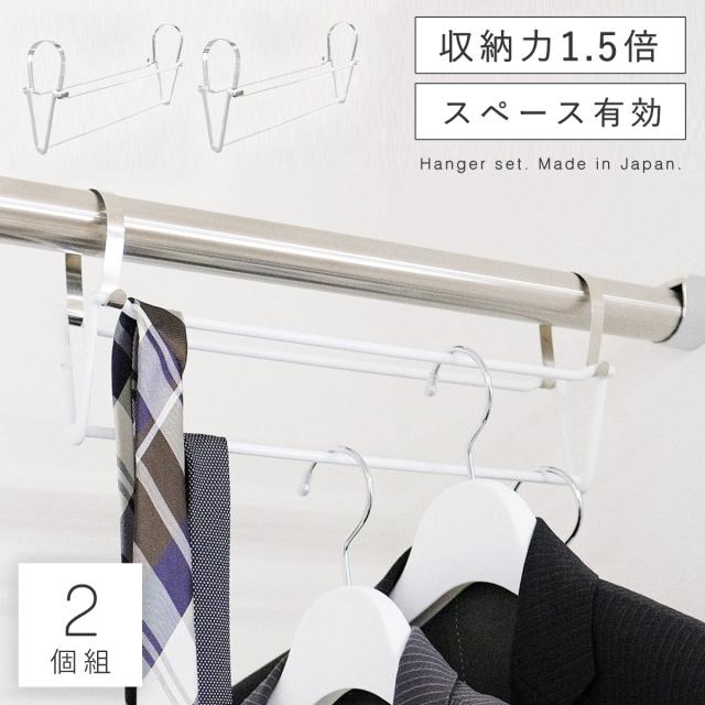 ハンガー 収納アップ 2段 吊り下げ ハンガー フック ハンガーラック 収納力アップ 薄型 スリム 省スペース クローゼット 収納 モノクローゼット V字スペースフック 2個組