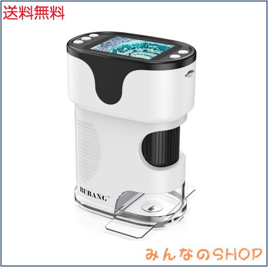 顕微鏡小学生子供用 - 1000倍 4K 2.0インチ画面 充電式 ミニポケットデジタル顕微鏡 スライドキット付き 携帯型 教育ギフト 4-12歳の子供