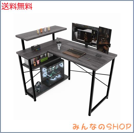 ZXD パソコンデスク L字 ゲーミングデスク 幅105 L字デスク pcデスク 机 ラック付き 収納 コーナー オフィス 在宅勤務 書斎 グレー
