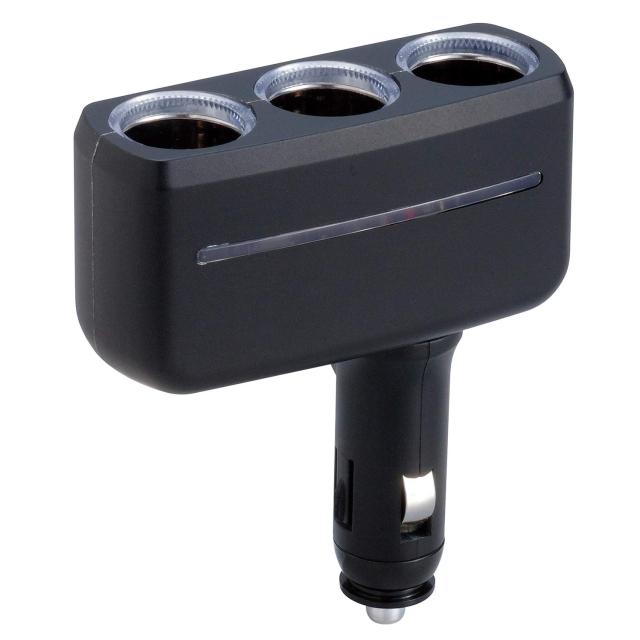 車のシガーライターソケットに差し込み、電源を3極に分配できる。プラグ部のスライドボタンでLOCKを解除すると、ソケット部を角度を90度の範囲内で変えられる。また、差し込み角度によって360度向きを変えられる。シリンダーとサイドラインがブルーに発光する。国産車・外車問わず使用できる。
