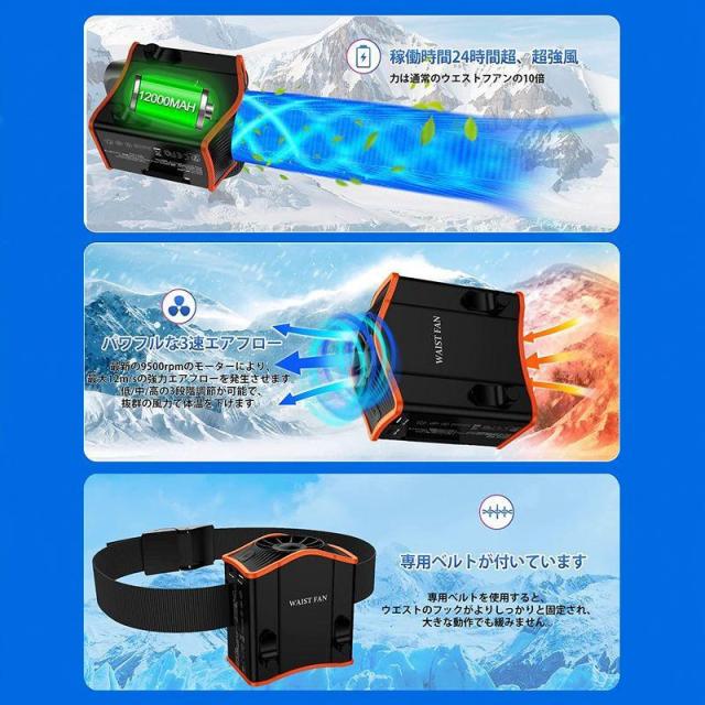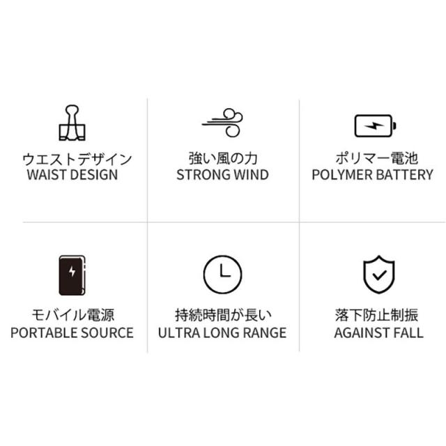 【パワフルな3速エアフロー】最新の9500rpmのモーターにより、最大12m/sの強力エアフローを発生させます。 低/中/高の3段階調節が可能で、抜群の風力で体温を下げます。