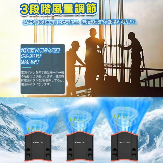 腰掛け扇風機 屋外作業 扇風機 携帯扇風機 羽なし 最大24時間稼働 大容量 3段階調節 多機能携帯式扇風機 静音 USB充電式 熱中症対策