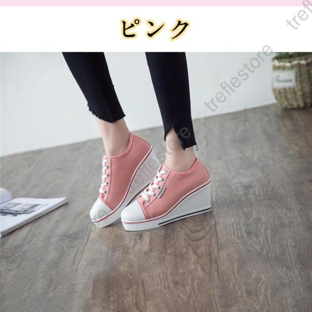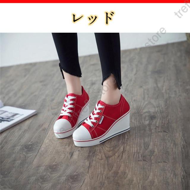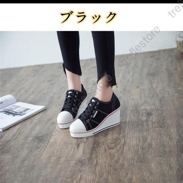 レディース 厚底スニーカー スニーカー ハイヒール ウェッジソール カジュアルシューズ 厚底 ローカット インヒール8cm 厚底 レースアップ 編み上げ