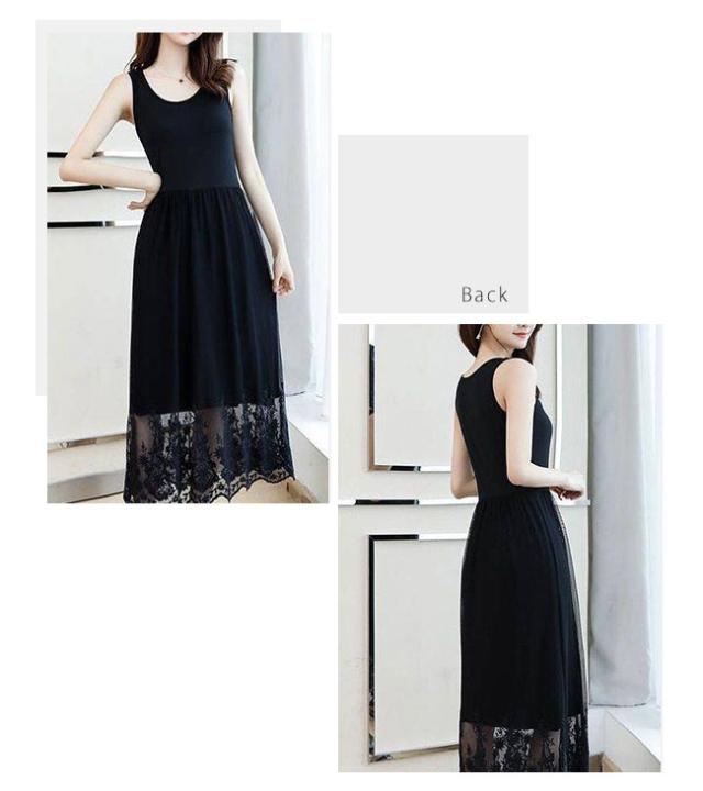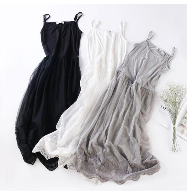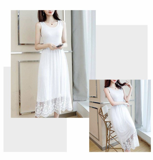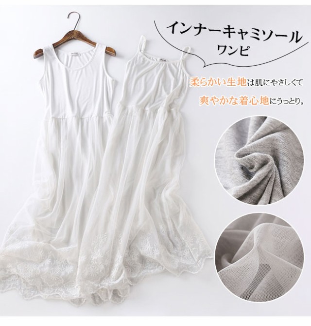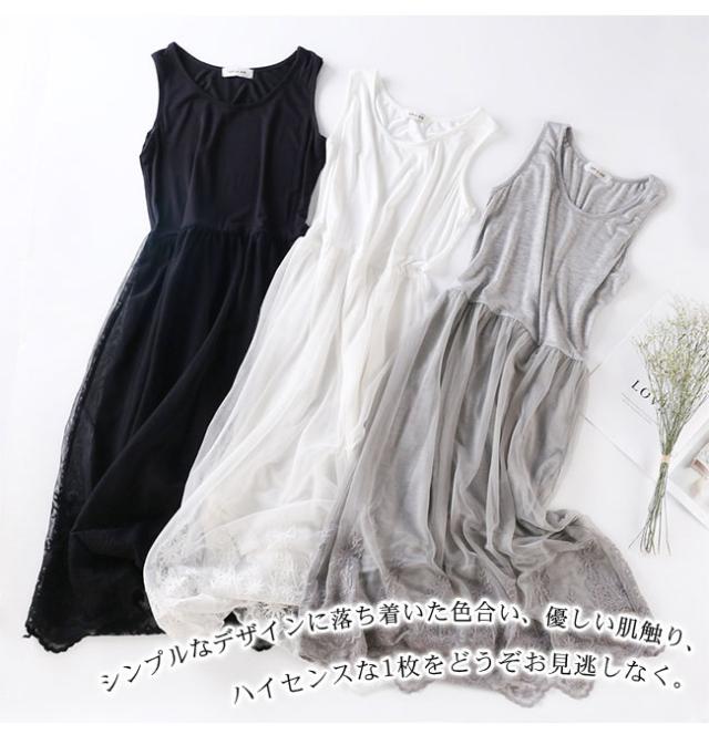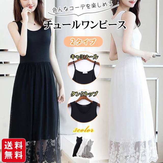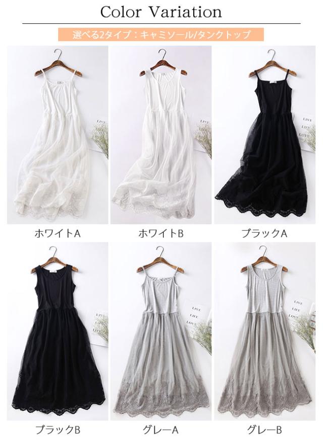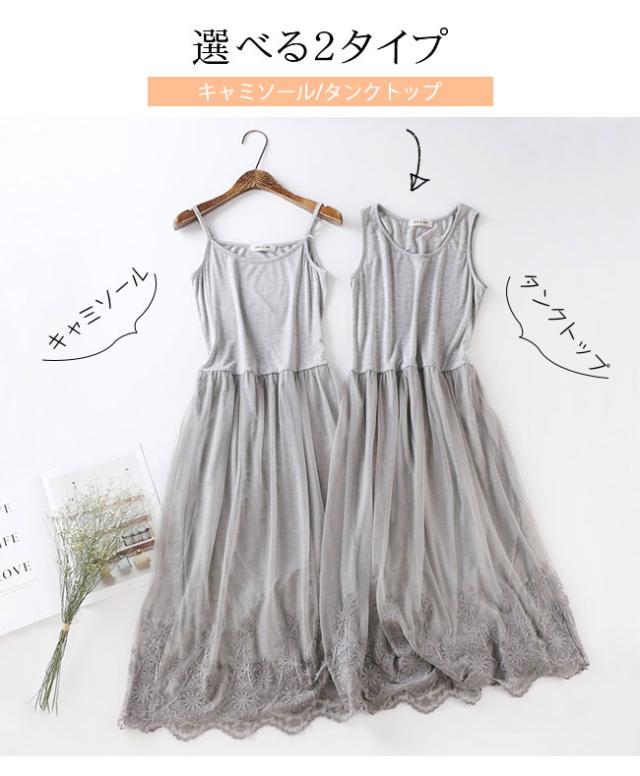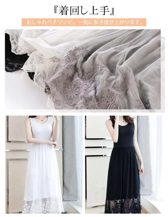 ペチコート ワンピース レディース タンクトップ キャミソール 2タイプ ペチワンピース ロング丈 チュールワンピース インナー 刺繍 レース コーデ