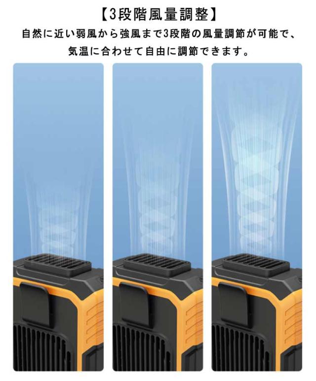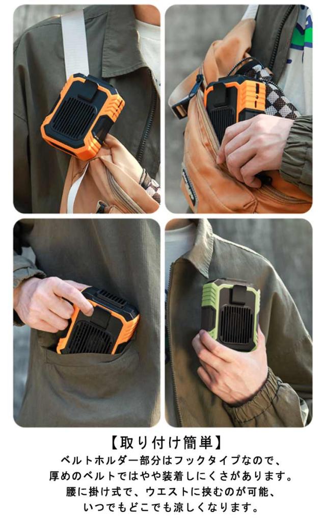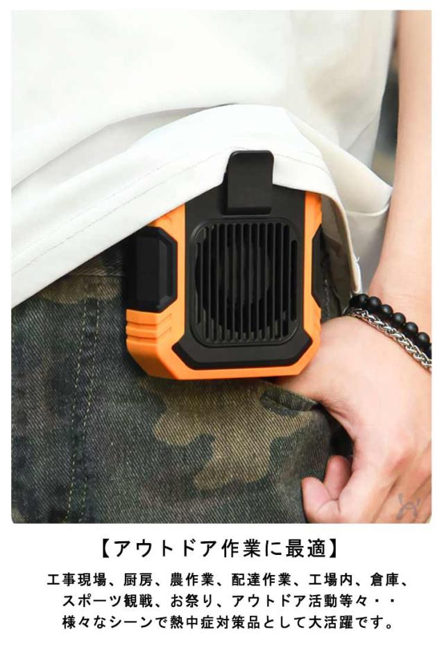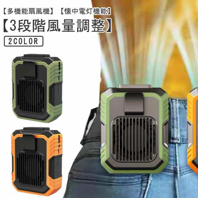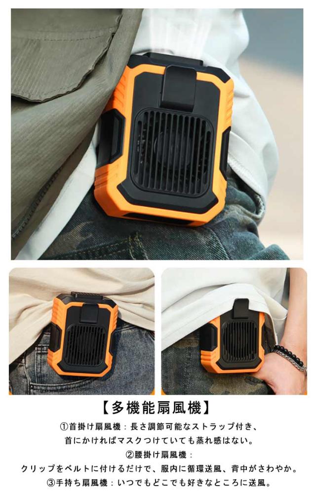 | 【多機能扇風機】1.首掛け扇風機:長さ調節可能なストラップ付き、首にかければマスクつけていても蒸れ感はない。2.腰掛け扇風機:クリップをベルトに付けるだけで、服内に循環送風、背中がさわやか。3.手持ち扇風機:いつでもどこでも好きなところに送風。 【3段階風量調整】自然に近い弱風から強風まで3段階の風量調節が可能で、気温に合わせて自由に調節できます。 【懐中電灯機能】LED照明用ランプが付いてあり暗い場所での作業、緊急時などの照明になります。外出先、キャンペン場でスマホを充電可能で、一台で懐中電灯、、扇風機の機能があり、もっと便利になります。 【取り付け簡単】ベルトホルダー部分はフックタイプなので、厚めのベルトではやや装着しにくさがあります。腰に掛け式で、ウエストに挟むのが可能、いつでもどこでも涼しくなります。 【USB充電】4000mAhの大容量電池を内蔵し、USB充電方式を採用しています。パソコン、、アダプターなどで簡単に充電ができます。 【アウトドア作業に最適】工事現場、厨房、農作業、配達作業、工場内、倉庫、スポーツ観戦、お祭り、アウトドア活動等々・・様々なシーンで熱中症対策品として大活躍です。 | |