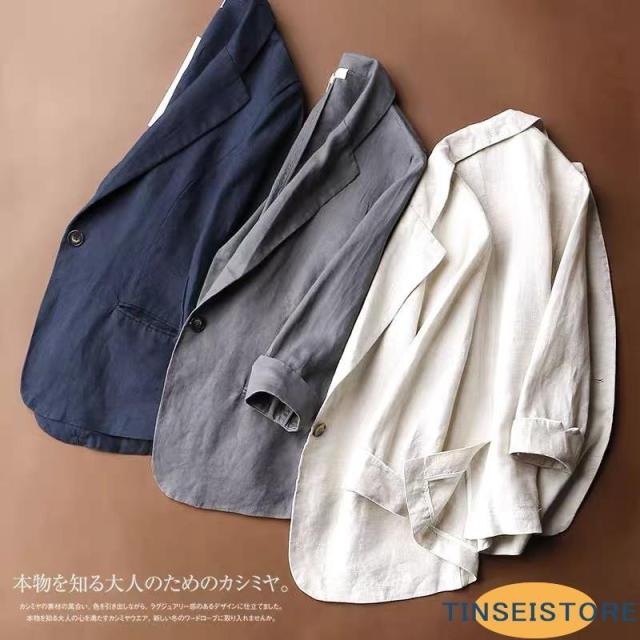 リネンジャケット レディース 麻ジャケット テーラードジャケット 綿麻 コットンリネン 麻混 麻ジャケ 七分袖 スーツ サマージャケット 天然素材 リ