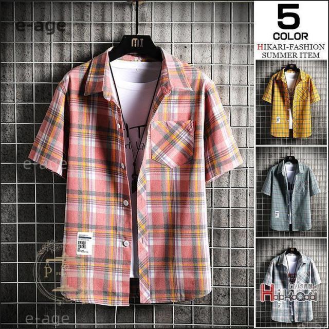ネルシャツ メンズ 半袖シャツ カジュアルシャツ トップス チェックシャツ おしゃれ 夏物 半袖 胸ポケット 敬老の日 プレゼント