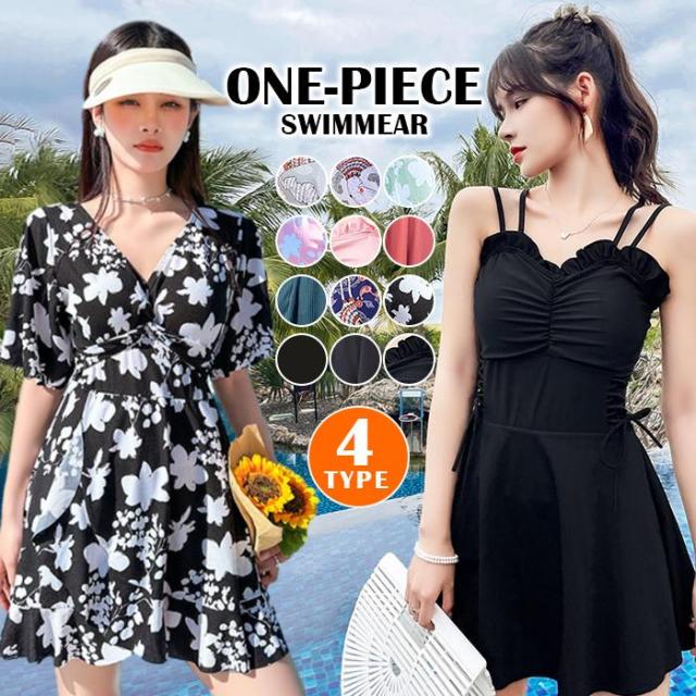 水着 ワンピース レディース オールインワン 体型カバー水着 ママ水着 20代 30代 40代 ぽっちゃり オトナ女子 大きいサイズ フレアスカート 可愛い お洒落 エレガント お腹 お尻 太もも 控えめ