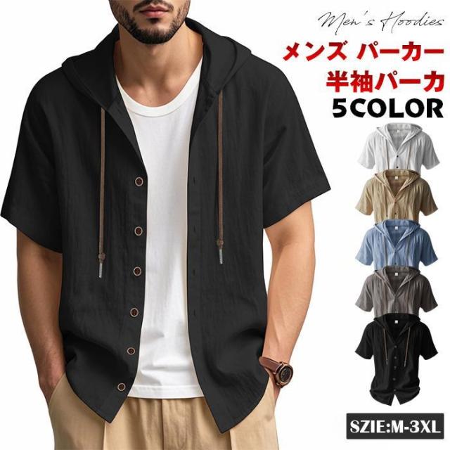 メンズ パーカー 綿麻 半袖パーカー 夏 涼しい おしゃれ 開襟 メンズ パーカー トップス 大きいサイズ メンズ パーカー 韓国風 カジュアル おしゃれ パーカー メンズファッション オシャレ カジュアル