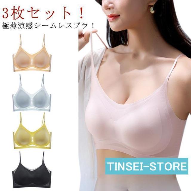 シームレス インナー 涼感 ワイヤーなし 3枚セット ノンワイヤー 夏 ブラジャー 接触冷感 涼しい 夏用 冷感 ブラ 胸を小さく見せる 極薄 締め