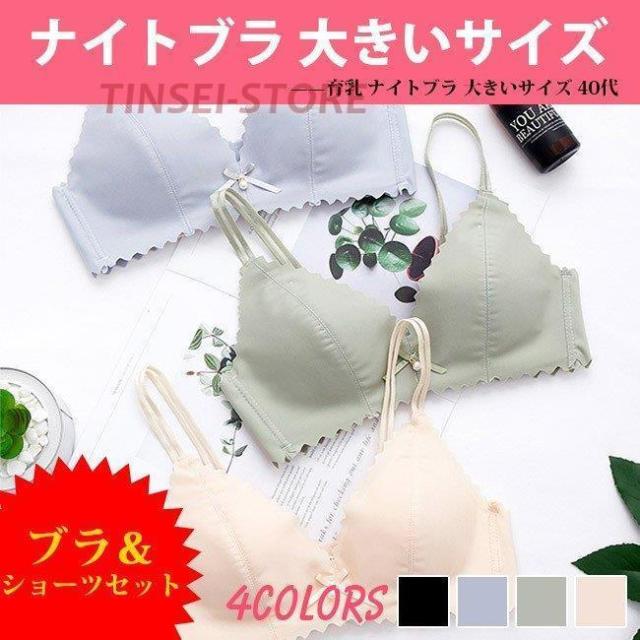 ブラ&ショーツセット ナイトブラ ブラジャー ショーツ ノンワイヤーブラ 下着 大きいサイズ 三角ブラ