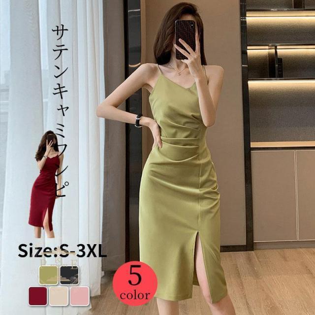 春夏のおしゃれスタイルに欠かせないキャミソールワンピース。 さらさらとした滑らかなサテン調素材で仕立てて、