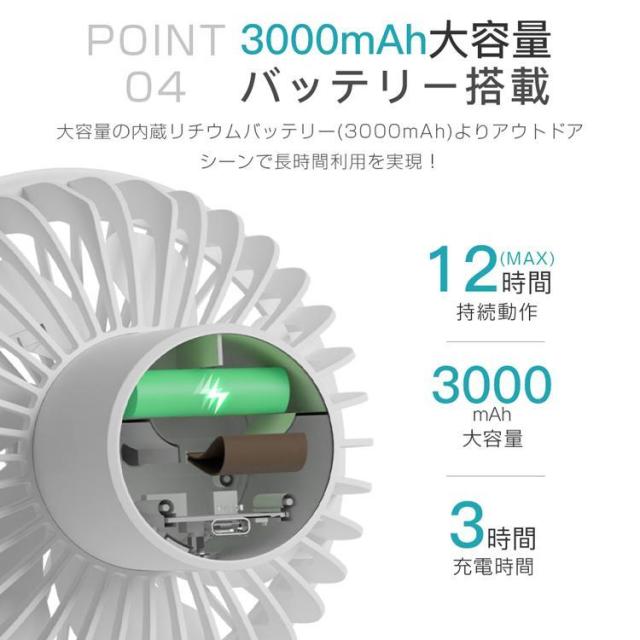 首かけ扇風機 小型 静音 冷却 卓上 節電 キャンプ用 冷風機 節電 壁掛け usb充電式扇風機 ハンディ扇風機 大容量 LEDライト?三脚付き