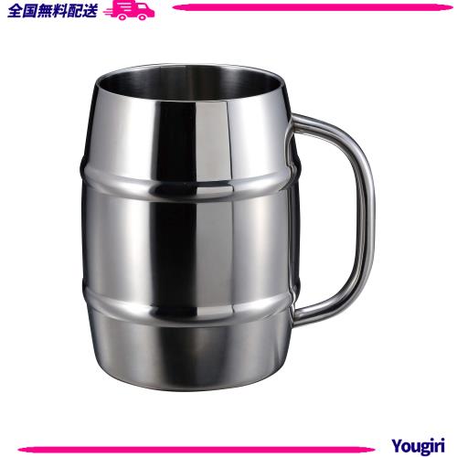 キャプテンスタッグ(CAPTAIN STAG) コップ マグカップ ビールジョッキ ビアジョッキ ダブルステンレス 真空二重構造 保温・保冷 樽型 1L