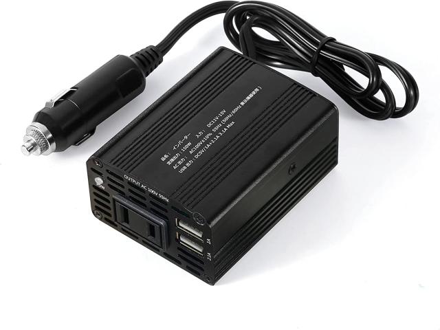 カーインバーター - 自動車のバッテリーのDC12V直流電力をAC100V交流電力に変換して、定格消費電力150Wまでの電子機器に給電可能です。ACコンセント×1口(AC100V出力)、USBポート×2口(DC5V 1A+2.1A 合計:3.1A出力)色々な電子機器を同時に充電できるので、大切な電子機器の電池切れの心配がないドライブを楽しめます