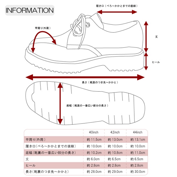 40インチ(約24.5cm〜25.0cm)