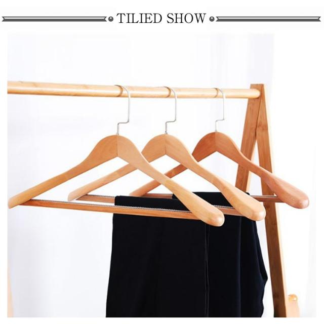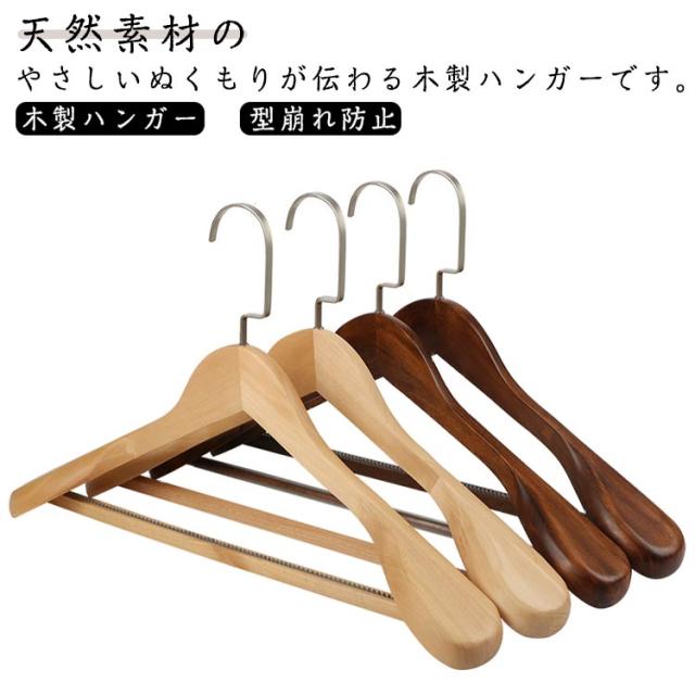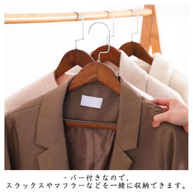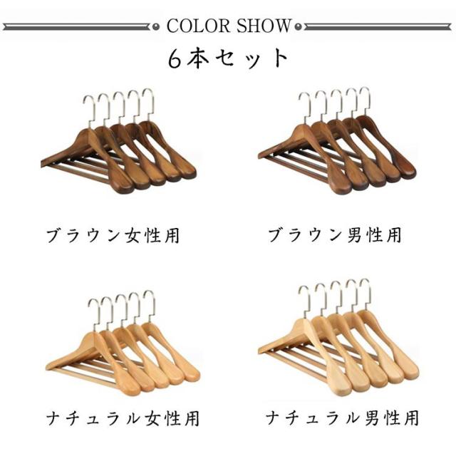 ハンガー 木製 6本セット 衣類ハンガー 洋服ハンガー ズボンバー付き スーツ シャツ ジャケット コート用 礼服 型崩れ防止 スラックス メンズ レディース ブラウン ナチュラル