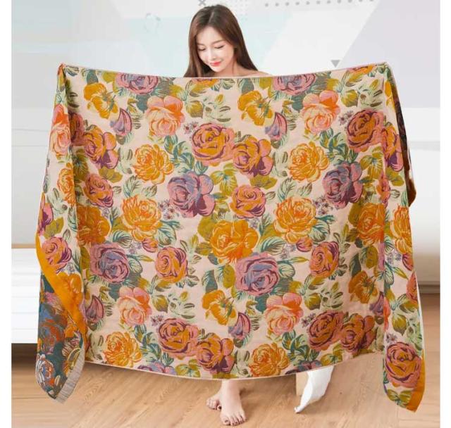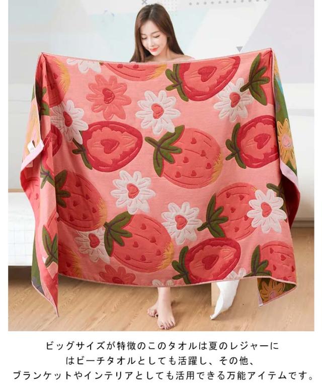 バスタオル 大判 タオルケット ブランケット おしゃれ 綿 ガーゼ ナチュラル タオルブランケット 夏用 総柄 ひざ掛け タオル 80*160cm タオルケット 北欧 コットン アウトドア キャンプ ビーチ プール イチゴ柄 花柄 送料無料