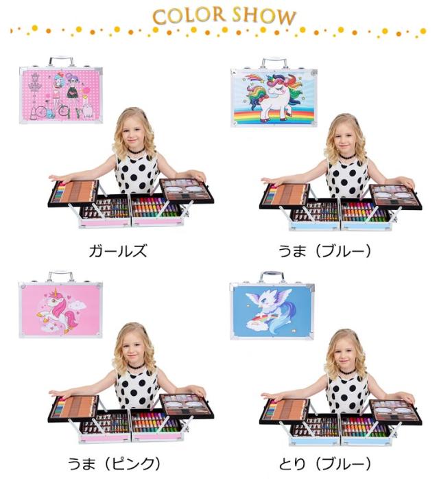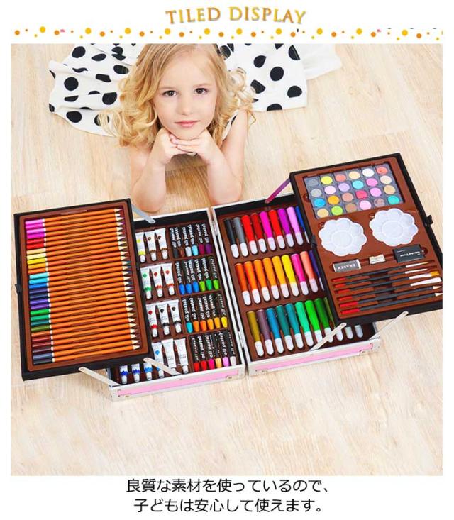 | 200pcs 子供用お絵かきセット 色鉛筆 水彩ペン 油絵棒 色粉 良質な素材を使っているので、子どもは安心して使えます | |