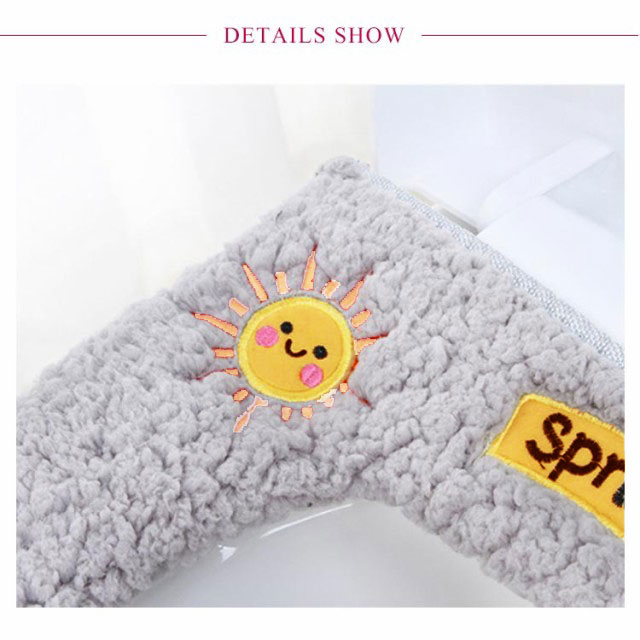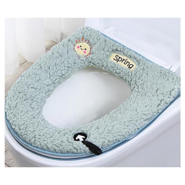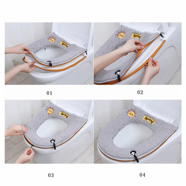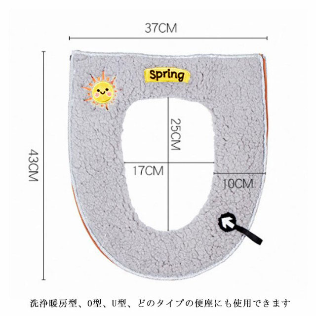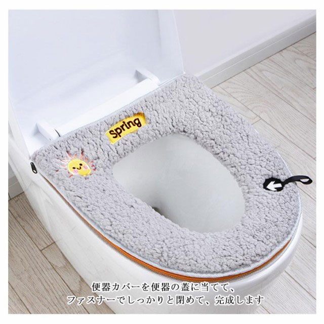 | ふわふわタッチで肌触りのよい便座シートです。 便器カバーを便器の蓋に当てて、ファスナーでしっかりと閉めて、完成します 取っ手付きなので、手を汚さないで便座の蓋を開けることができます ふんわり生地で、暖房便座のヒーターを切ってもお尻が冷たくないので、節電できます 洗浄暖房型、O型、U型、どのタイプの便座にも使用できます 繰り返し洗濯機で丸洗いできます。(ネット使用) | |
