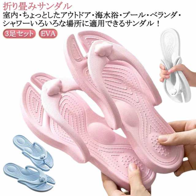 3足セット 折り畳みサンダル 男女兼用 シャワーサンダル 旅行 出張 折り畳みスリッパ レディース メンズ 携帯スリッパ バススリッパ ビーチサンダル 夏 EVA やわらか 軽量 コンパクト 水洗い 速乾 防災グッズ サンダル 折りたたみ 組み立て シンプル かわいい 大きいサイズ