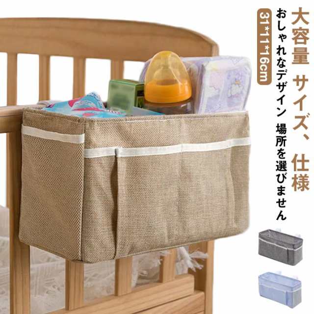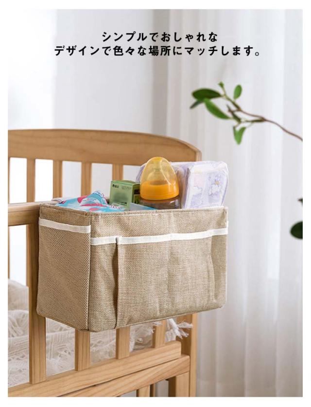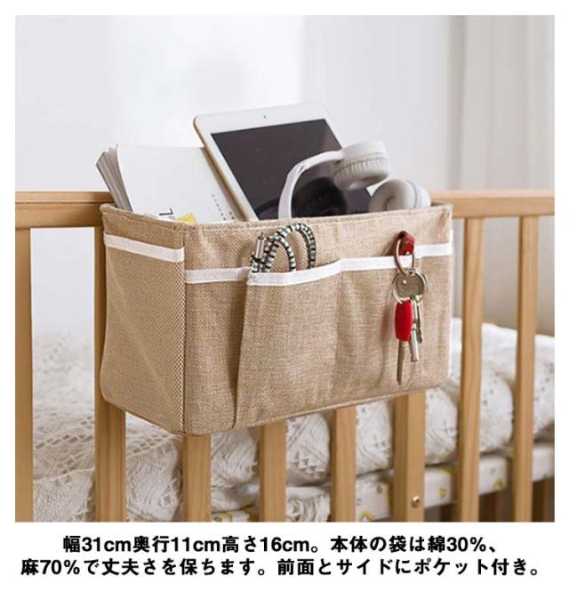 ベッドサイド 収納ボックス 吊り下げ 収納袋 綿麻 ベビーベッド サイドポケット おむつ入れ オムツケース 哺乳類 おもちゃ 収納ケース 小物整理 仕切り 大容量 スマホ 書類 リモコン ポケット 小物入れ 雑貨収納 車座席 マジックテープ 送料無料