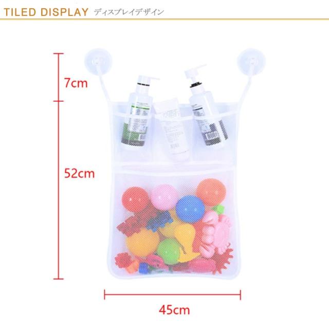 | バスルームのおもちゃ袋 ポイポイ入れるだけどで片付け完了 通気性に優れ、いつも清潔! 吸盤フックで好きなところに簡単設置できる | |