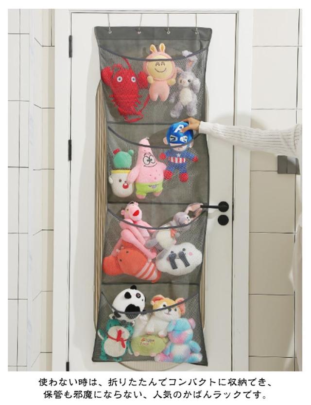 | 壁掛けやドア掛け収納式ぬいぐるみウォールポケット。【4段】【メッシュネットタイプ】 素材がしっかりしているので、長くご愛用いただけます。 中身がひと目でわかるメッシュポケットなのでお目当ての物が一目で取り出し出来る優れものです! 使わない時は、折りたたんでコンパクトに収納でき、保管も邪魔にならない、人気のかばんラックです。 クローゼットのロッドに掛けるだけ小物類から靴箱まで、アイデア次第で使い方自由で。大人のハンドバッグ、靴、財布、セーターからベビー服、おもちゃまで何でも収納できます クローゼット 収納。 | |
